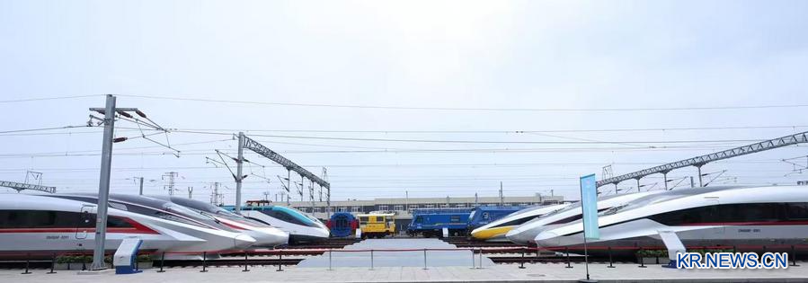 중국 국가철도 시험센터 전시구역에는 세계에서 가장 빠른 고속열차인 CR450AF와 CR450BF가 전시돼 있다.