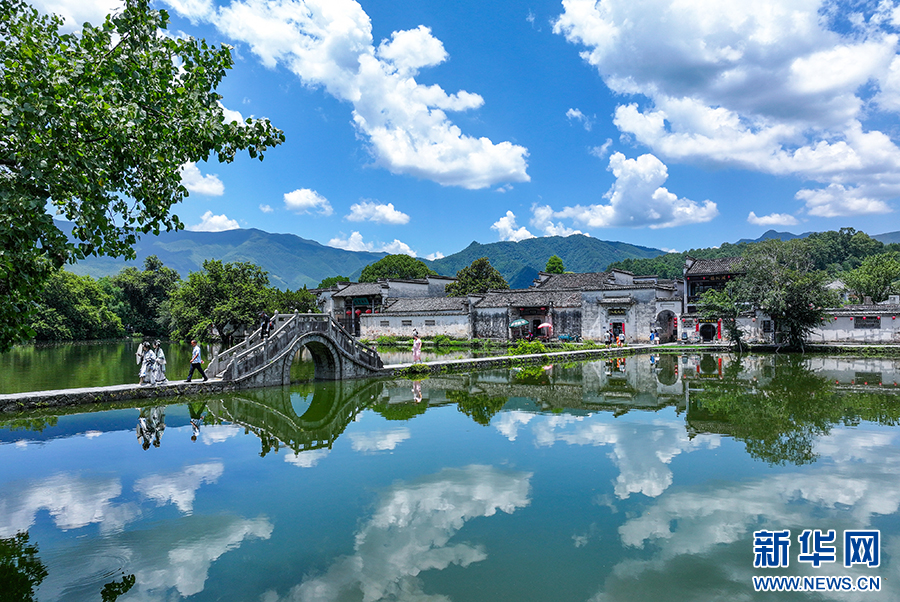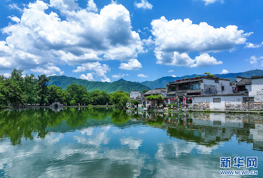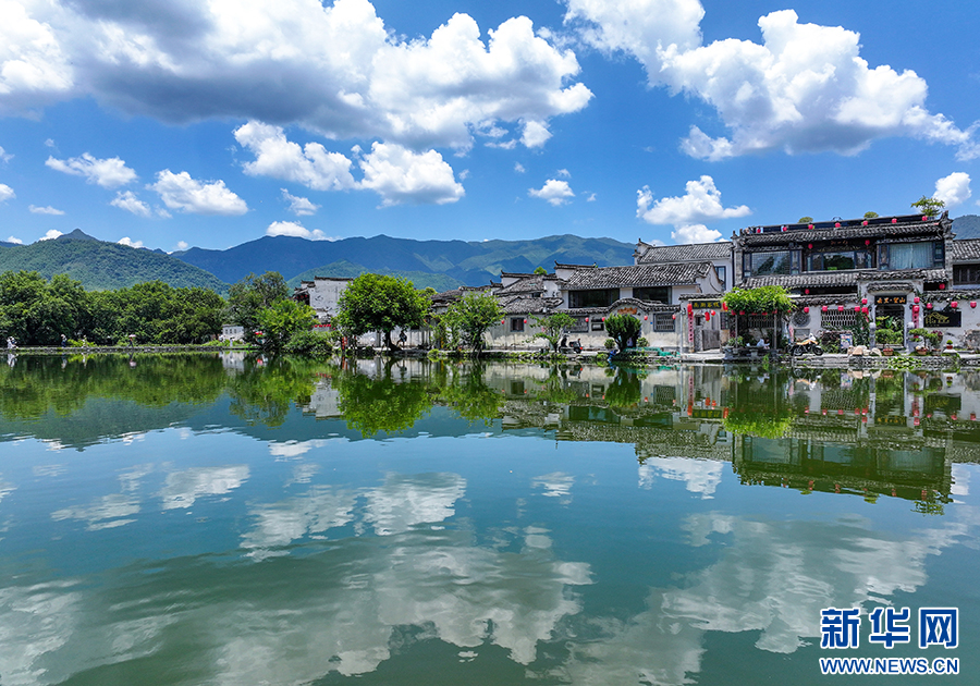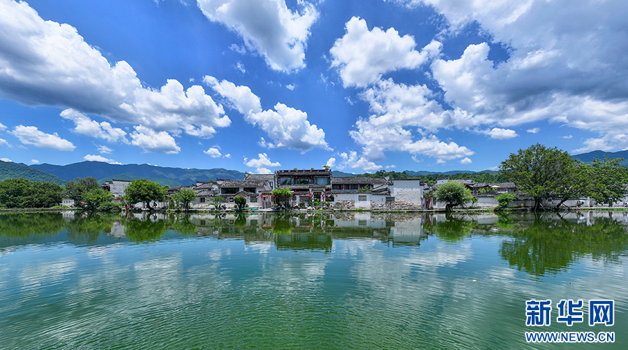 [신화망 베이징 7월15일] 최근 훙(宏)촌이 고즈넉하고 아름다운 풍경을 연출했다. 푸른 하늘과 하얀 구름이 휘파 건축물과 조화를 이루어 한 폭의 풍경화를 보는 듯 하다.