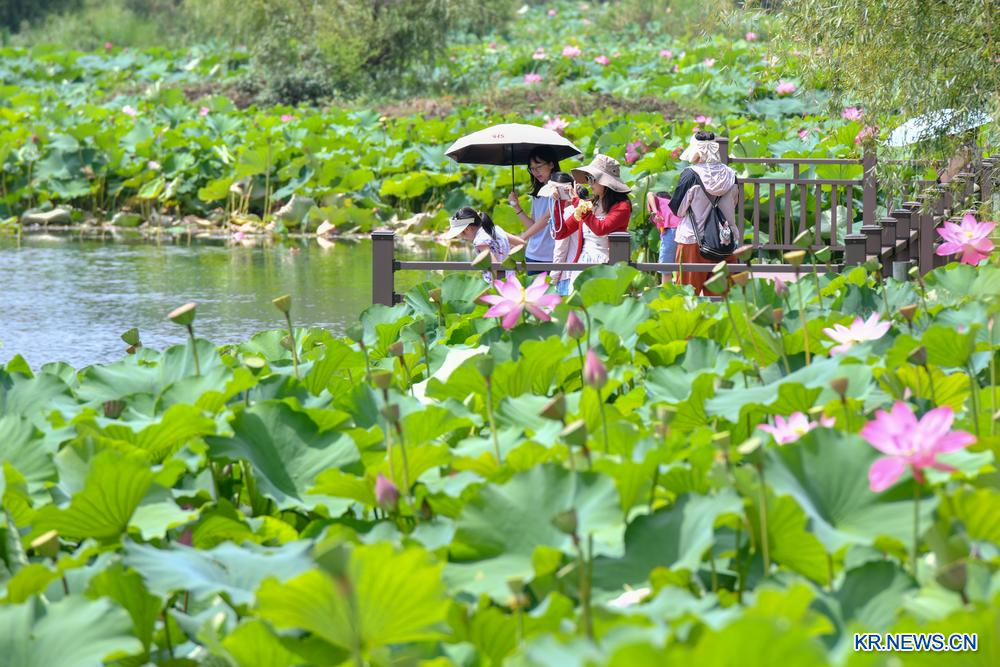 [신화망 쿤밍 7월18일] 한여름에 접어들자 윈난(雲南)성 추베이(丘北)현 푸저헤이(普者黑)관광지의 연꽃이 꽃망울을 터뜨리기 시작했다. 이에 많은 관광객의 발길이 이어지고 있다. 관광지 내에 마련된 다양한 특색 문화·관광 요소는 현지 여름 관광 소비를 활성화하며 주민 소득 증대와 현지 관광 경제를 이끌고 있다.