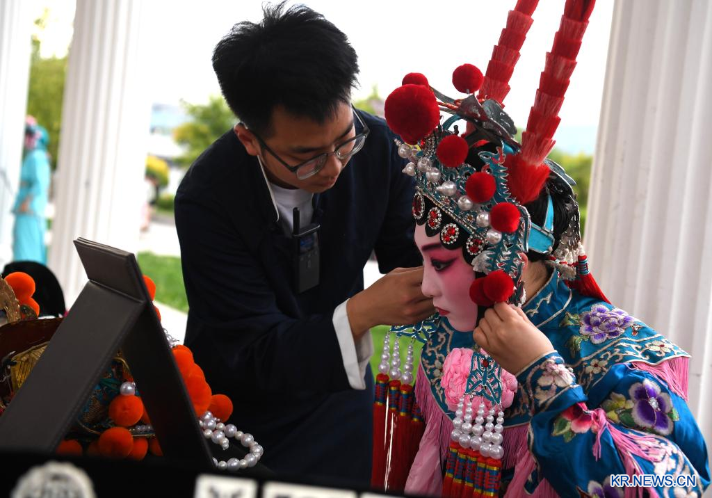 장쑤(江蘇)성 타이저우(泰州)의 메이란팡 경극단 ‘모리화카이(茉莉花開)’가 17일 신장위구르자치구 자오쑤(昭蘇)현 우쑨(烏孫)광장에서 현지 주민들에게 ‘호가장(扈家莊)’, ‘장상화(將相和)’ 등 대표적인 경극 작품을 옴니버스 형식으로 구성한 특별 공연을 선보였다. 이번 공연은 타이저우시가 신장의 문화 발전을 위해 추진한 구체적인 실천이다. 이는 두 지역 간의 문화 교류를 증진했을 뿐만 아니라 타이저우와 자오쑤 간의 깊은 우정을 보여주었다.[촬영/신화사 기자 셰슈둥(謝秀棟)]