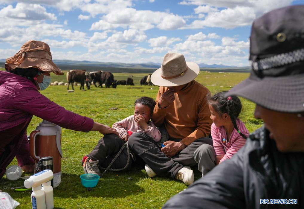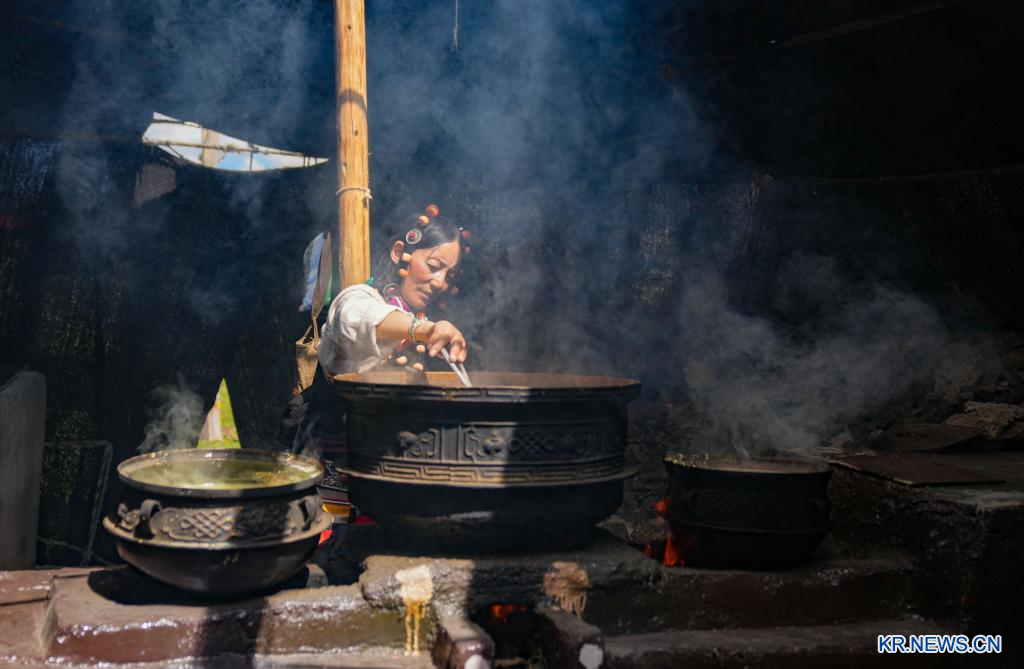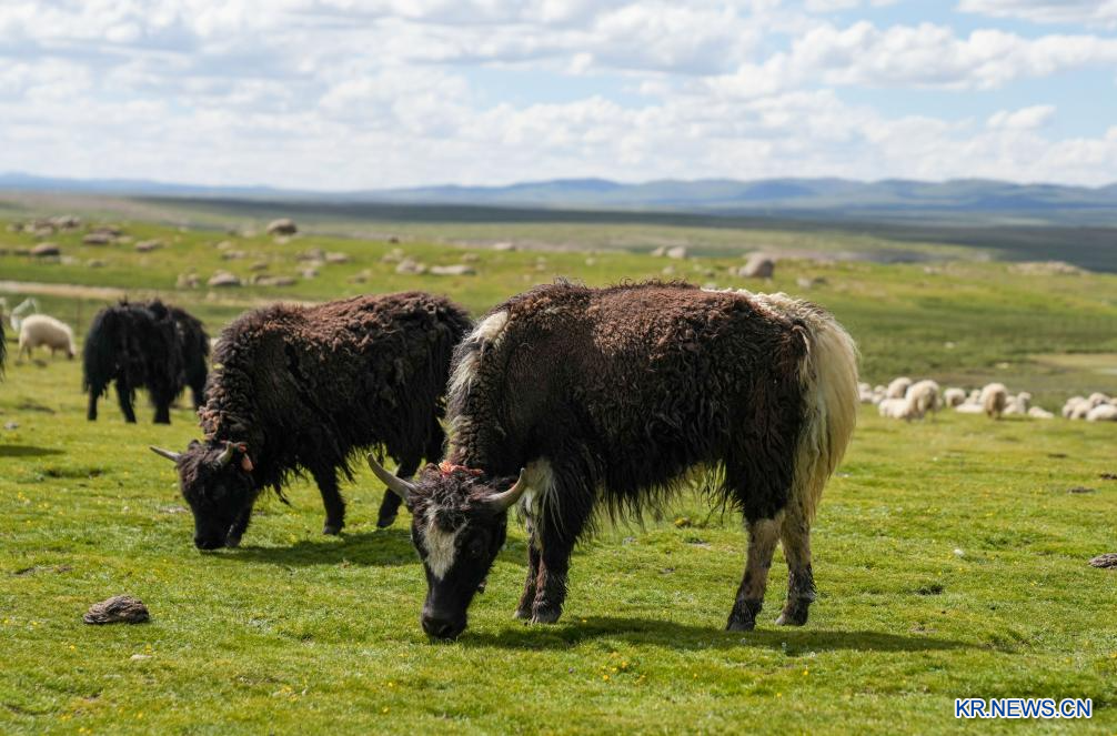 [신화망 라싸 7월20일] 시짱자치구 나취시 녜룽현에서 14km 떨어진 샤취향 초원 깊숙한 곳에 소재한 친환경 축산업 업체 가췌(噶確)는 야크 사육, 유제품∙육류제품 가공과 판매에 종사하는 자치구급 선도 기업으로 1786.67㎢의 목초지와 1200여 마리의 가축을 보유하고 있으며, 100명이 넘는 지역 주민에게 일자리를 제공해 시짱자치구 북부 목축 지역 농촌 진흥의 모범 사례가 되고 있다.[촬영/신화사 기자 진메이둬지(晉美多吉)]