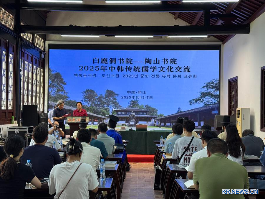 [신화망 난창 8월8일] 지난 3일부터 7일까지 '2025년 중한 전통 유학 문화 교류회'가 장시(江西)성 루산(廬山)시 바이루둥(白鹿洞)서원에서 열렸다. 바이루둥서원, 난창(南昌)대학, 한국도산서원, 한국외국어대학교에서 온 30여 명의 연구원과 교수∙학생 대표가 이번 학술 활동에 참가했다.