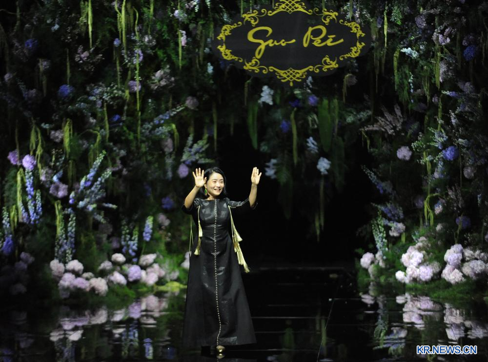 이날 디자이너 궈페이가 개막식 쇼를 마치고 관객들에게 인사를 하고 있다. 2025.9.10