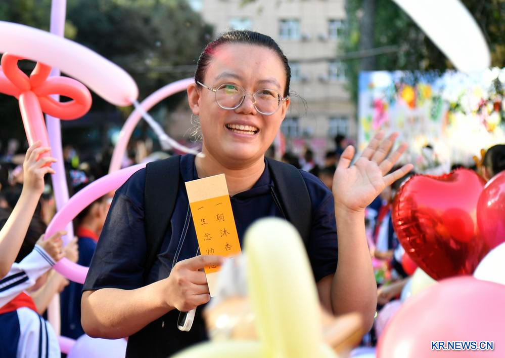[신화망 우루무치 9월11일] 10일 중국 '제41회 스승의 날'을 맞아 신장(新疆)위구르자치구 우루무치(烏魯木齊)의 각 학교에서는 다양한 행사를 열어 감사의 마음을 표현했다.