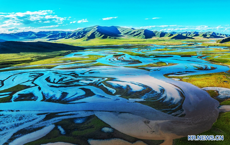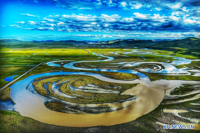 하늘에서 내려다본 만쩌탕(漫澤塘)습지대초원 풍경.