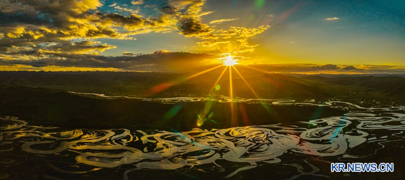 그림같은 만쩌탕(漫澤塘)습지대초원 가을 풍경을 드론으로 내려다봤다.