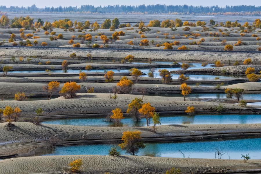 신장(新疆) 바추(巴楚)현에선 사막 포플러숲과 습지가 어우러져 야생 동물의 보금자리가 됐다. 한때 강물이 말라 나무들이 쓰러졌던 이 숲 지역은 현지의 지속적인 생태 보호 강화 조치를 통해 다시금 생명력을 발산하고 있다.