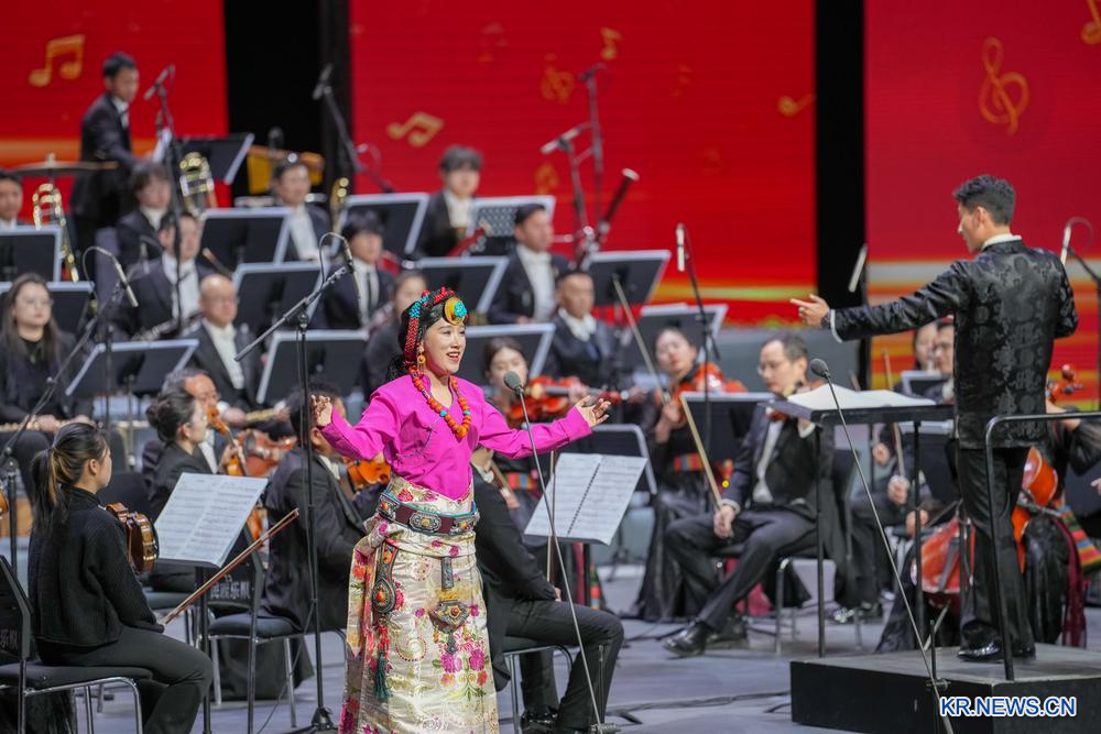 시짱자치구 가무단, 시짱 극단, 중앙가극원 교향악단이 함께 공연을 펼쳐 관객들에게 감동적인 음악 무대를 선사했다. 2025.12.31
