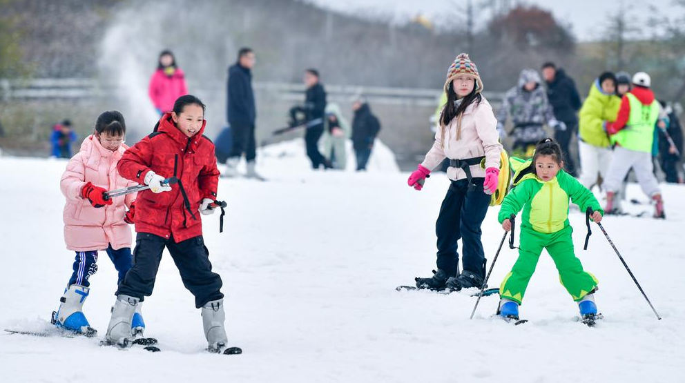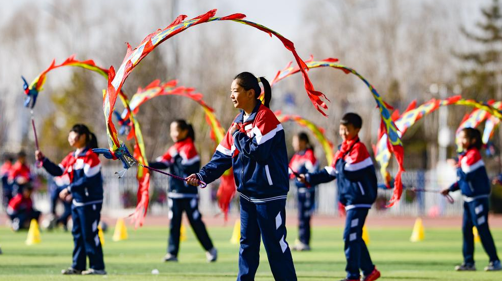 中 헤이룽장, 교내에서 빙설 스포츠 즐기는 학생들
